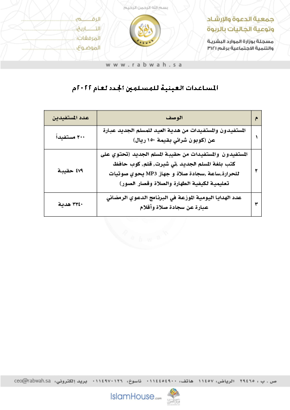 المساعدات العينية للمسلمين الجدد لعام 2022م